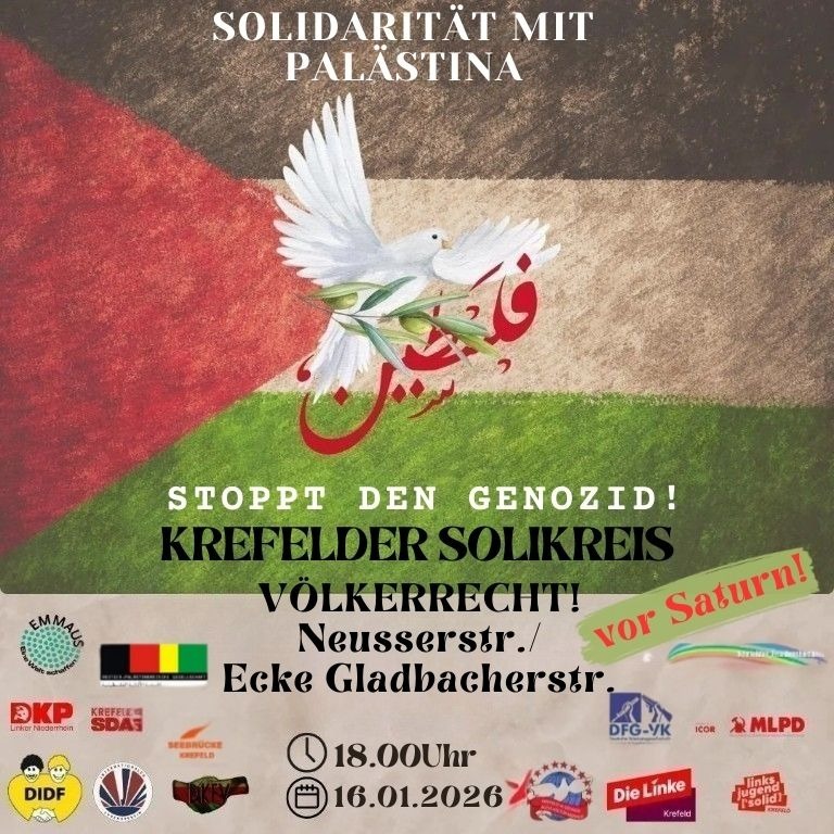 Der Krefelder Solikreis Völkerrecht informiert zu den Kundgebungen "Solidarität mit Palästina":